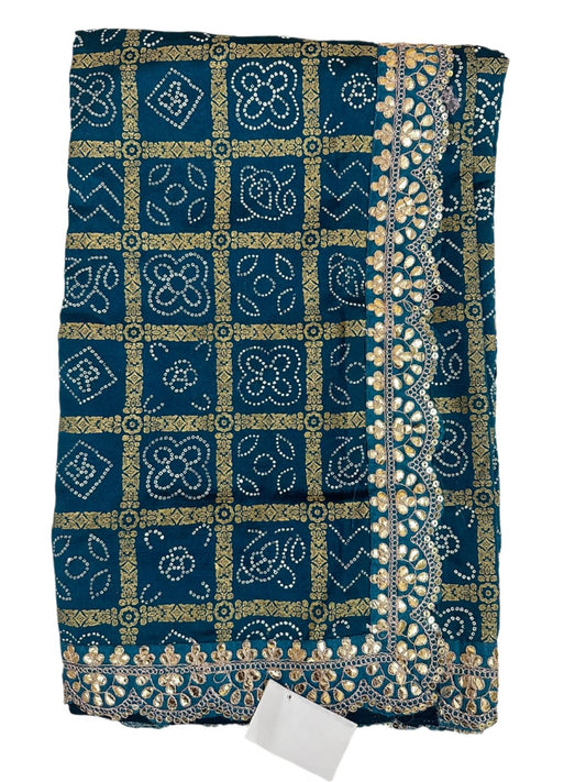 Bandhani Ghatchola Saree Blue Bandhej Rajasthani Saree Gota Border Party Wear Sari