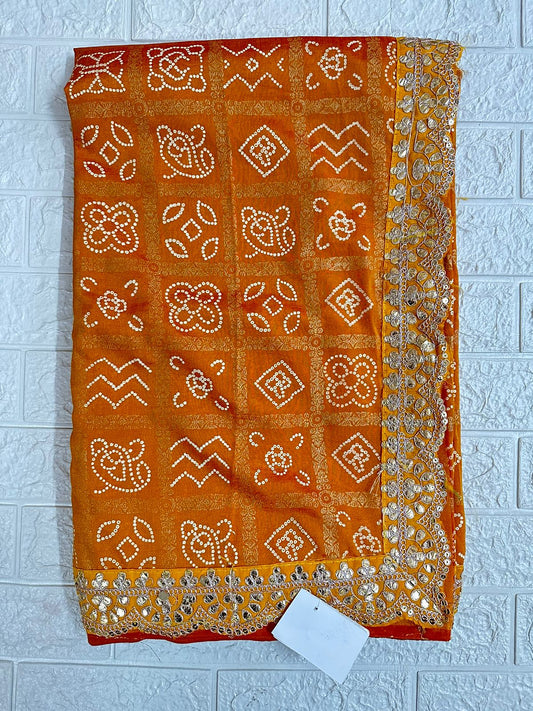 Golden Yellow Ghatchola Bandhani Saree Party Wedding Wear Gota Patti Border Saree