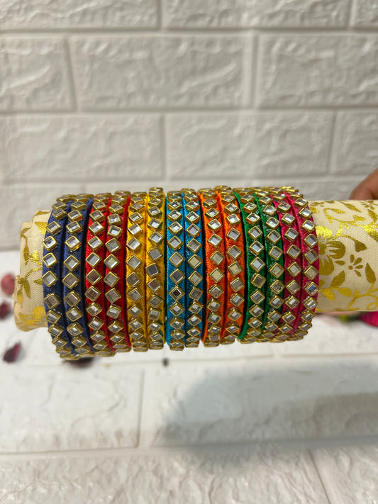 Multicolor Kundan Silk Thread Bangles Mehndi Gifts