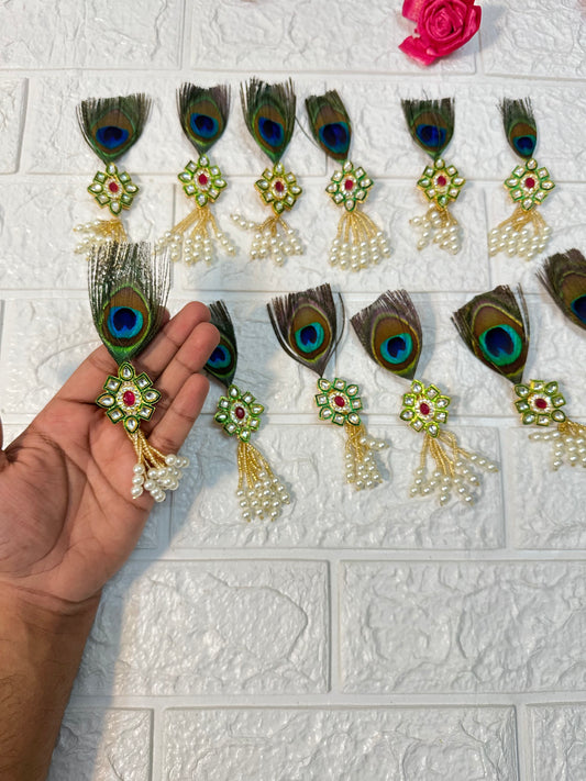 Kundan Peacock Feather Welcome Brooch Baraat Swagat Brooch For Guests