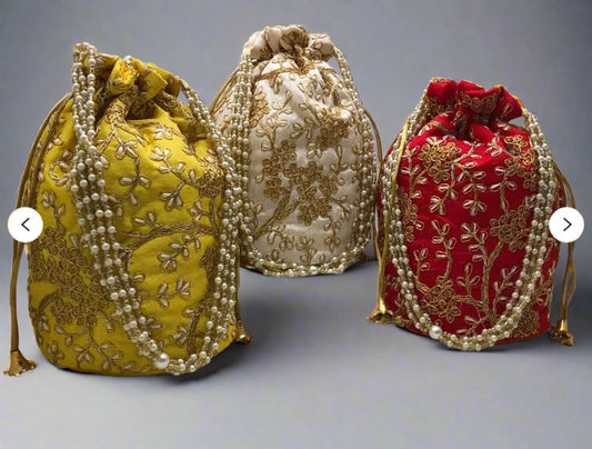 Round Embroidered Potli Bags Wedding Favors, Return Gifts, Party Gifts For Guests