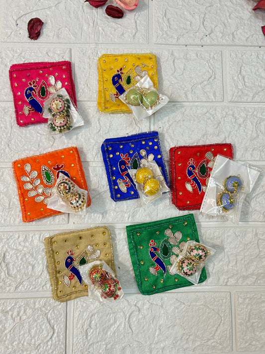 Gota Patti Coin Pouch & Meenakari Jhumki Earrings Combo Bridesmaid Gifts, Mehndi, Sangeet Gifts