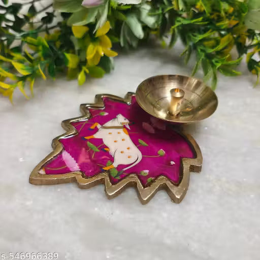 Brass Pichwai Mix Designs Leaf Shape Diya Puja Gifts, Housewarming Favors