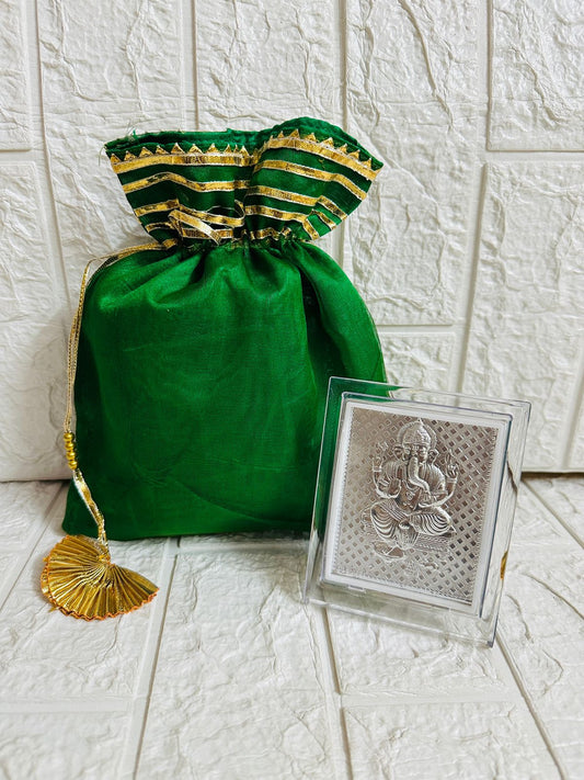 German Silver Ganesha Frame With Potli Bags Return Gifts Diwali Gifts