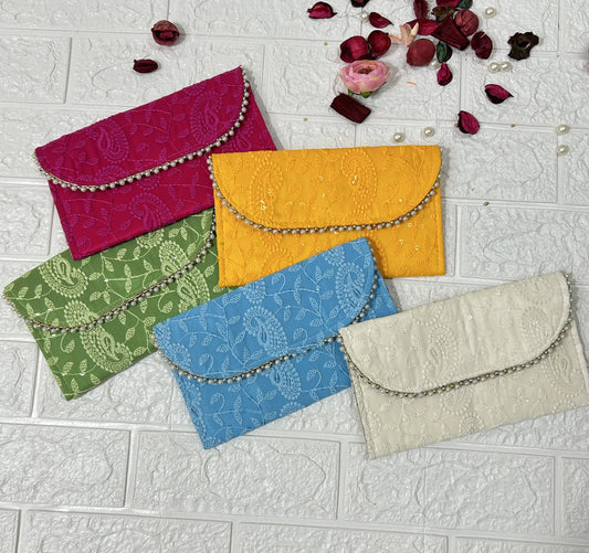 50 Pieces Chikankari Clutch Purse Women's Return Gifts, Mehndi, Sangeet, Dholki Gifts For Guests
