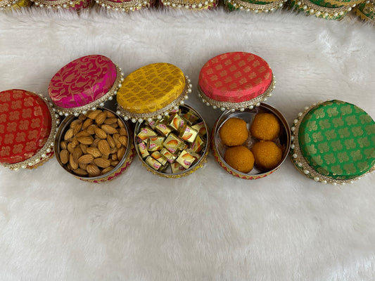 Brocade Steel Ladoo Boxes, Sweet Box, Mithai Box, Wedding Gifts For Guests