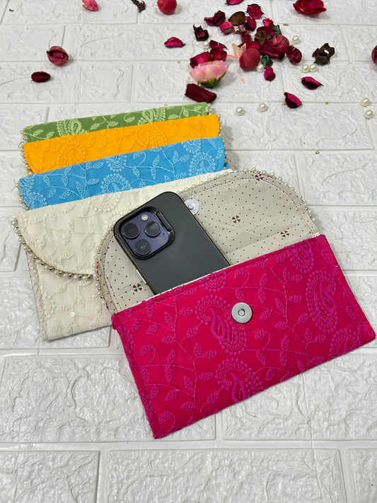 Bulk Chikankari Embroidered Clutches Return Gifts, Mehndi Sangeet Return Gifts
