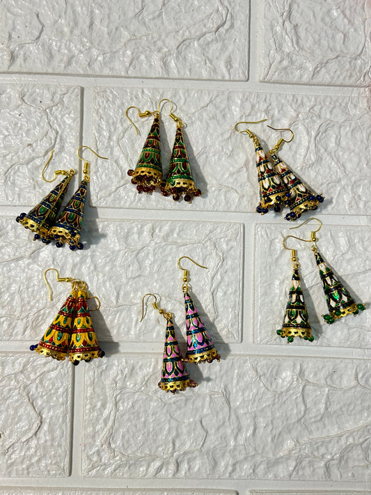 Meenakari Cone Earrings Women's Return Gifts Mehndi Favors