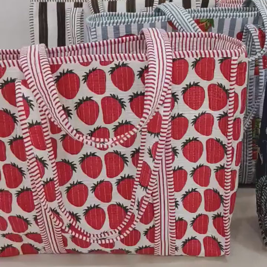 Cotton Quilted Tote Bag Floral Block Print, Boho Beach Bag, Bridesmaid Gifts